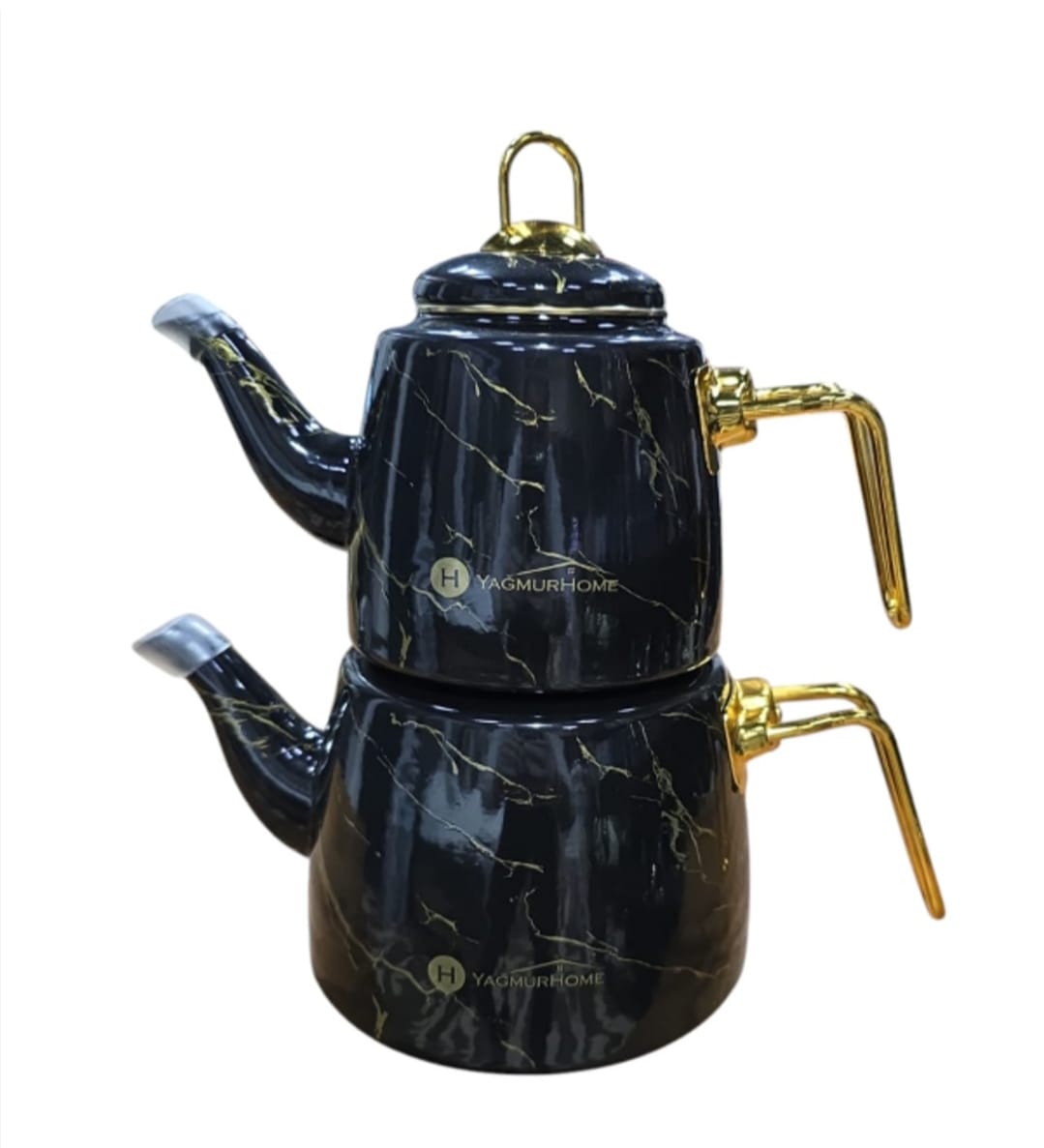 Qara mərmər naxışlı böyük çaydan 2.5litr kiçik (dəm) çaydanı 1.5 litr tutumu 4 rəng çeşidi