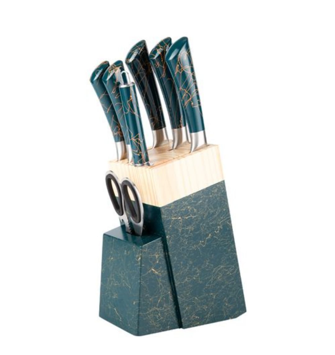 Dəstə bir necə muxdəlif bıçaq və bir qayçı daxildir, paslanmaz materialdan hazırlanma