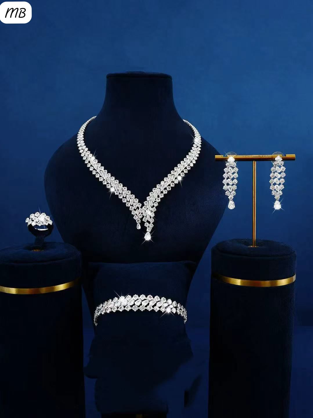 Boyunbağı, sırğa, üzük, və bilərzikdən ibarət tam dəst, hədiyyəlik üçün mükəmməl seçimdir