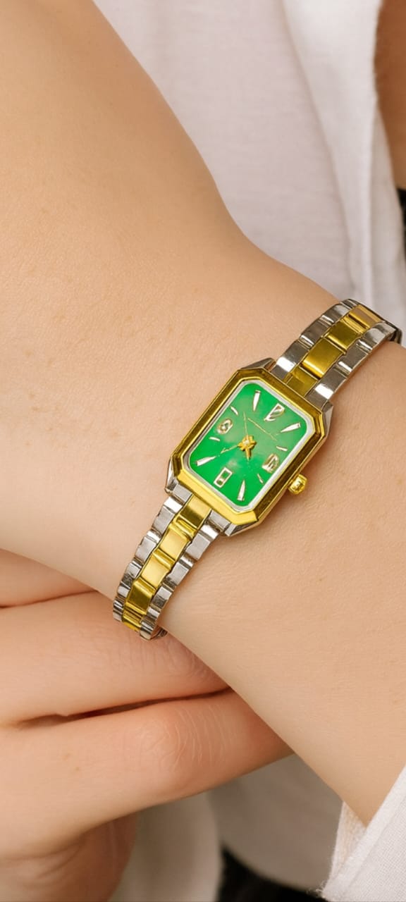 Xanımlar üçün Daxili yaşıl rəngli paslanmaz polad dəmirli kəmər qızılı və gümüş rəngli