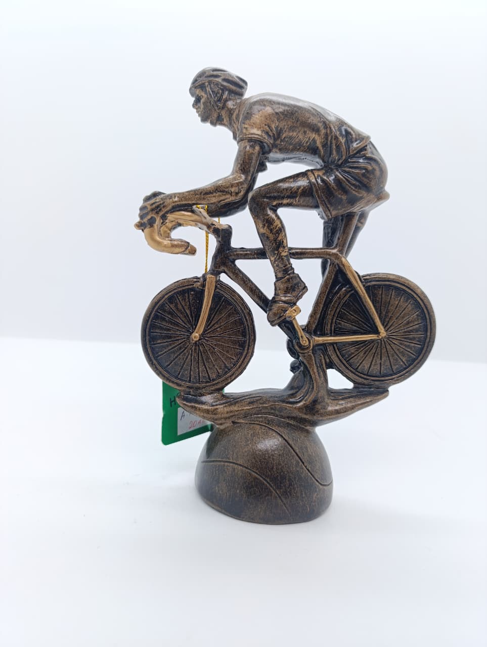 Velosiped sürən idmançının bürünc rəngli heykəlciyidir