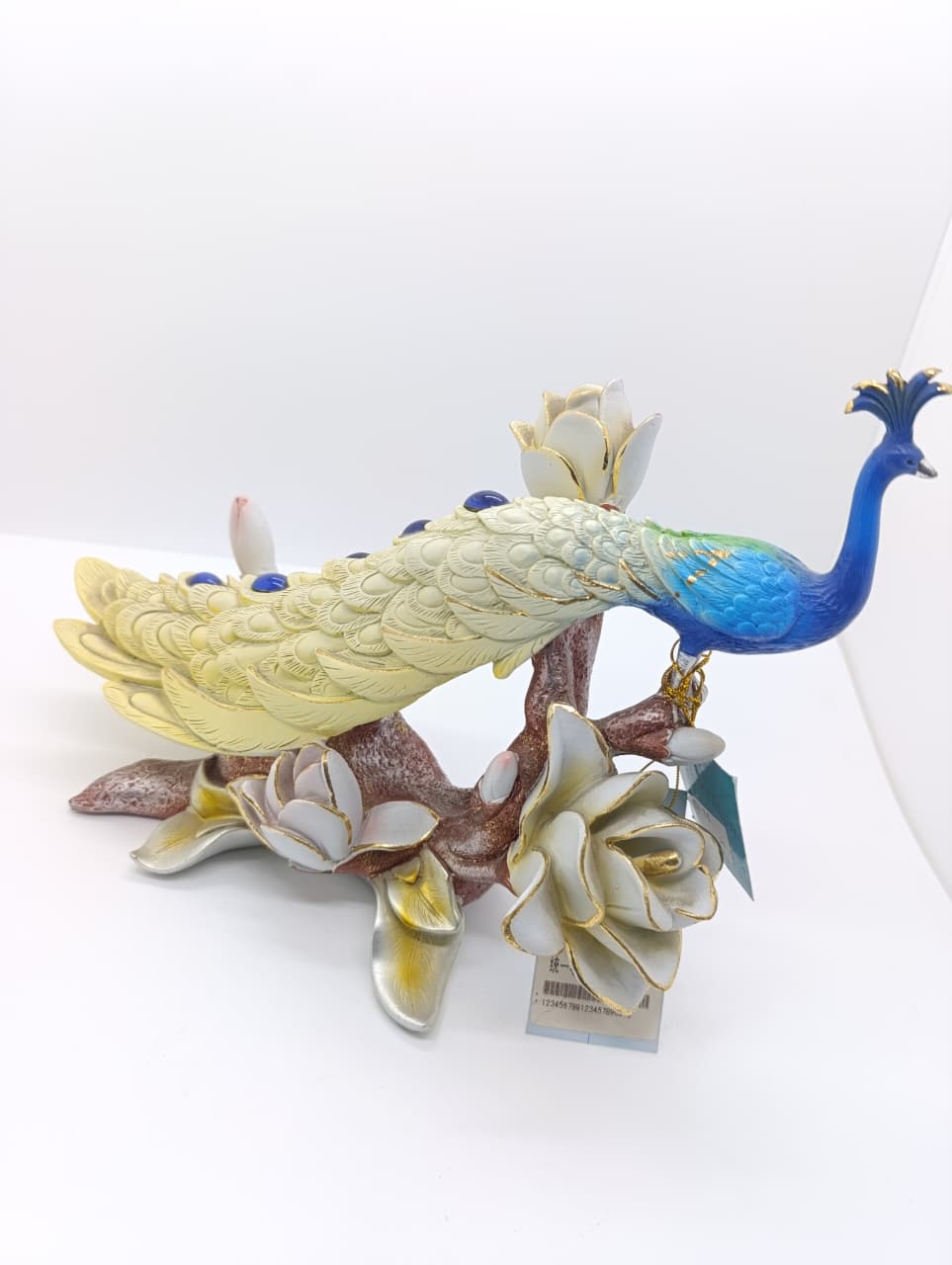 Tovuzquşu heykəlciyi ,Dizaynına həmçinin böyük,ağ çiçək detalları daxildir