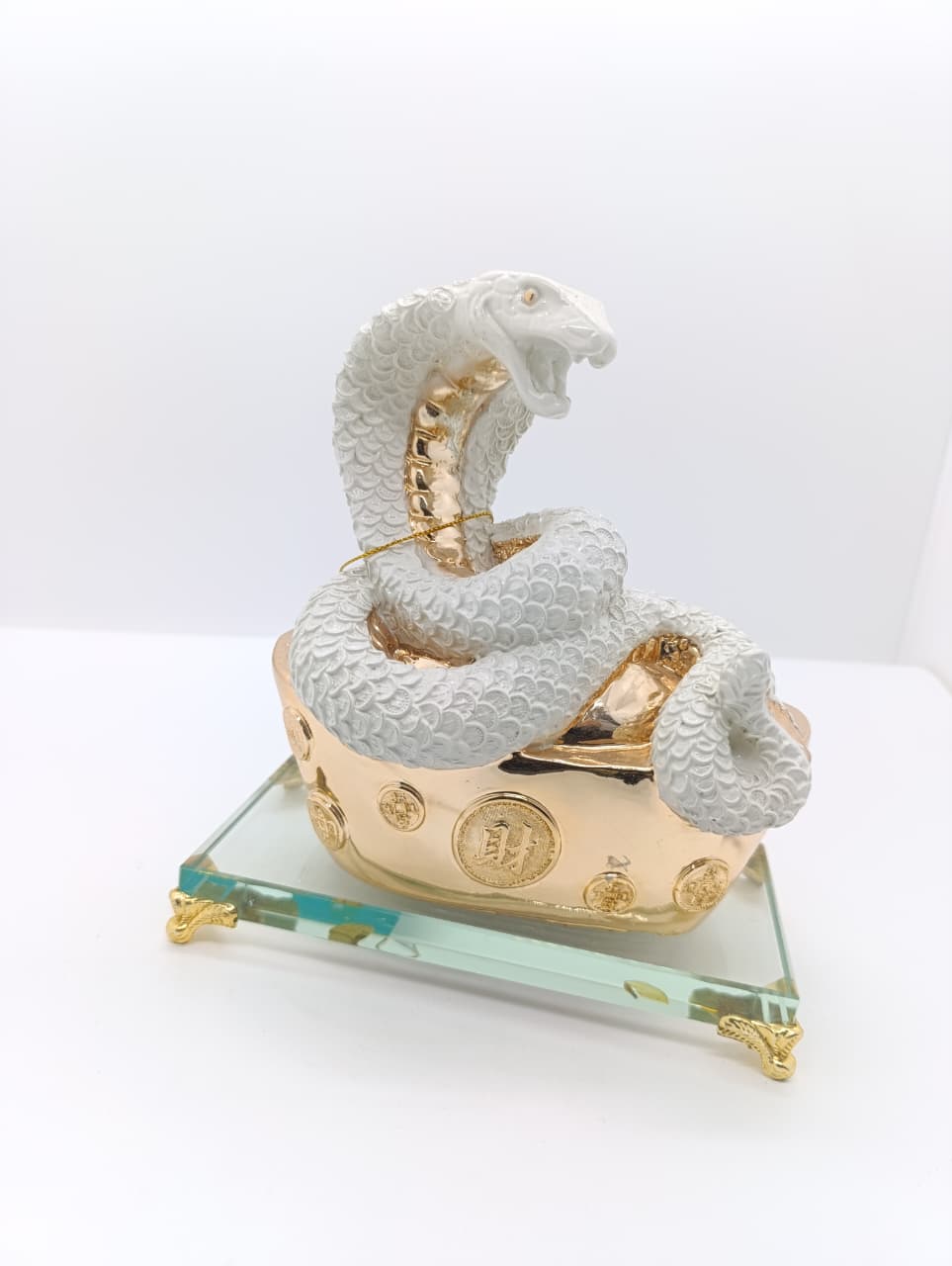Ağ kobra heykəlciyi ağ və qızılı rəngli dizayn