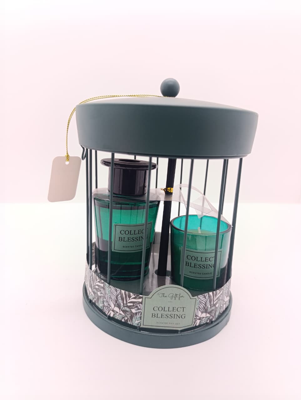 Quş qəfəsi şəklində bir dekorativ ətir və şam dəstidir
