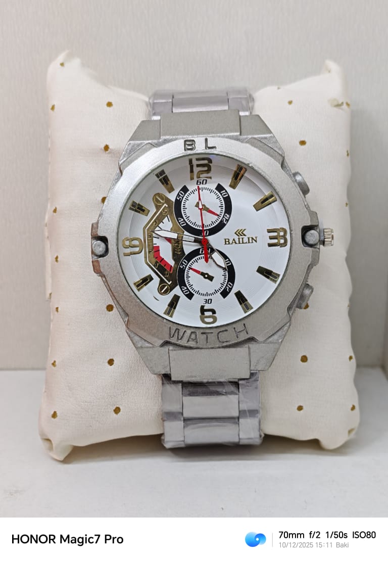 Gümüşü rəngli, içərisi rum rəqəmli yazıları ilə rəngi getməyən qol saatı