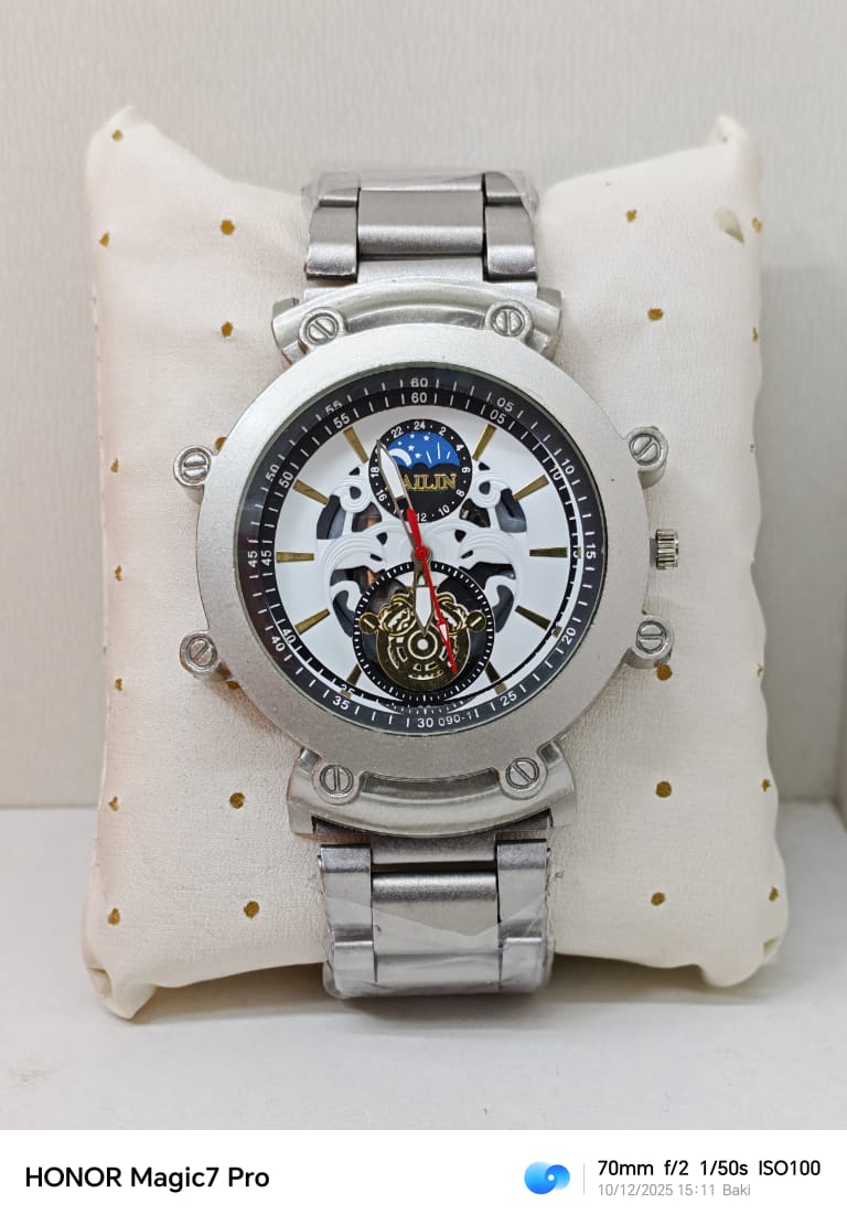 Gümüşü rəngli, içərisi rum rəqəmli yazıları ilə rəngi getməyən qol saatı